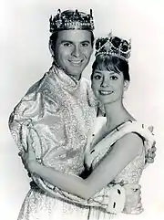 The original 1957 broadcast starred Julie Andrews as Cinderella and Jon Cypher as the Prince.[1] More than 107 million viewers saw the broadcast.[2][3] The musical was staged at the London Coliseum in 1958 in a holiday pantomime adaptation that also used songs from Me & Juliet.[4] Rodgers and Hammerstein signed with CBS.[5] Stage versions began to appear in U.S. theatres by 1961.[4]