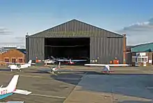 The United Kingdom's first purpose-built municipal airport, it has four grass runways. The airfield operates Tuesday - Sunday, from 9 am BST until 6 p.m. or sunset (whichever earlier) for fixed-wing aircraft. Commercial, private, military, police and air ambulance helicopters can operate in the hours of darkness by arrangement.[2]