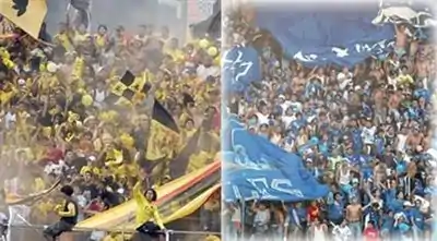 ![]() Left: Barcelona's Barra Brava la "Sur Oscura" Right: Emelec's Barra Brava "La Boca Del Pozo" | |