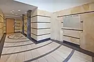 The Clock Tower Building, not far from the beaches washed by the ocean and with an unobstructed view of the nearby mountains, occupies a rectangular lot located at 225 Santa Monica Boulevard, in the heart of the city’s business district and close to the main thoroughfare Third Street Promenade. The ground floor of the skyscraper, in the form of a compact parallelepipedal block surmounted by a tower, is occupied by retail spaces, and the upper stories by offices.