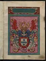 Arms of the King of Portugal in the Livro do Armeiro-Mor, armorial of the early 16th century