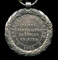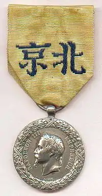 The Commemorative medal of the 1860 China Expedition (French: Médaille commémorative de l'expédition de Chine de 1860) was a military award of the Second French Empire to reward soldiers and sailors who participated in the Anglo-French expedition to China during the Second Opium War. It was created by imperial decree on 23 January 1861, by Napoleon III.[1]