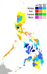 | Province | Arroyo | Poe | Lacson | Roco | Villanueva |