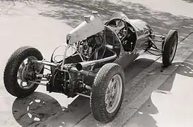 The little-known designer behind the car was Owen Maddock, who was employed by Cooper Car Company.[4] Maddock was known as 'The Beard' by his workmates, and 'Whiskers' to Charles Cooper. Maddock was a familiar figure in the drivers' paddock of the 1950s in open-neck shirt and woolly jumper and a prime force behind the rise of British racing cars to their dominant position in the 1960s. Describing how the revolutionary rear-engined Cooper chassis came to be, Maddock explained, "I'd done various schemes for the new car which I'd shown to Charlie Cooper. He kept saying 'Nah, Whiskers, that's not it, try again.' Finally, I got so fed up I sketched a frame in which every tube was bent, meant just as a joke. I showed it to Charlie and to my astonishment he grabbed it and said: 'That's it!' " Maddock later pioneered one of the first designs for a honeycomb monocoque stressed skin composite chassis, and helped develop Cooper's C5S racing gearbox.