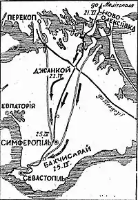 The Crimea Operation took place in April 1918 when Crimea was cleared of Bolsheviks by Ukrainian troops and the Imperial German Army.[1][2]