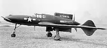 The Curtiss-Wright XP-55 Ascender (company designation CW-24) is a 1940s United States prototype fighter aircraft built by Curtiss-Wright. Along with the Vultee XP-54 and Northrop XP-56, it resulted from United States Army Air Corps proposal R-40C issued on 27 November 1939 for aircraft with improved performance, armament, and pilot visibility over existing fighters; it specifically allowed for unconventional aircraft designs. An unusual design for its time, it had a canard configuration, a rear-mounted engine, swept wings, and two vertical tails. Because of its pusher design, it was sarcastically referred to as the "Ass-ender".[1] Like the XP-54, the Ascender was designed for the Pratt & Whitney X-1800 engine, but was re-designed after that engine project was canceled. It was also the first Curtiss fighter aircraft to use tricycle landing gear.