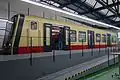 The aluminium bodyshells are built in Szolnok, with the final assembly taking place in Berlin. The bogies are derived from the Oslo Metro MX3000 trains.[5] In order to comply with regulations aiding the visually impaired, the doors are black as a contrast to the train's sides.[6]