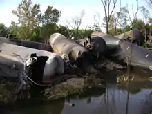 |journal=(help) - "Derailment of Canadian National Freight Train M33371 and Subsequent Release of Hazardous Materials in Tamaroa, Illinois, February 9, 2003, Accident Report NTSB/RAR-05/01". Washington, DC: National Transportation Safety Board. 2005. Cite journal requires