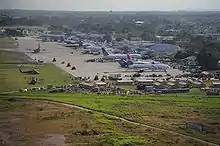 Relief operations crowd the airport, January 18.