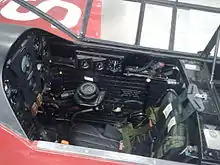 The fuselage was built principally from plywood over spruce longerons, while the upper and lower forward section were built up from spruce planking in order to achieve the necessary compound curves. As with the wing, the strength of the structure was dependent upon the skin. Fuel was carried in three fuselage tanks. The two main tanks filled in the nose and centre section in front of the cockpit. A third auxiliary tank, of only 20 gallon capacity, was placed immediately behind it and could be used to adjust the aircraft's trim. The pilot and navigator were seated in tandem in a cockpit set aft of the wing. While dual flight controls were fitted, only the forward position had a full set of flight instruments. The rear crew member could also see many of the pilot's instruments by craning sideways while seated. The cockpit was set low in order to reduce drag and forward visibility was very poor. The engines were uprated versions of de Havilland's newly developed Gipsy Six, race-tuned for optimum performance with a higher compression ratio and with a reduced frontal area. The DH.88 could maintain altitude up to 4,000 feet (1,200 m) on one engine. The main undercarriage retracted backwards into the engine nacelles and was operated manually, requiring 14 turns of a large handwheel located on the right hand side of the cockpit.[6]