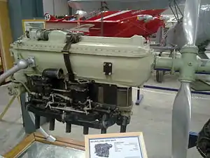 Preserved at the Shuttleworth Collection, one of the original race-tuned Gipsy Six R engines fitted to the winning DH.88 Comet Grosvenor House (background) for the MacRobertson Air Race in 1934.