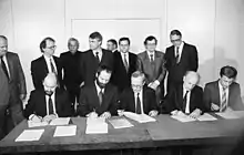From left to right: Rainer Eppelmann, Markus Meckel, Lothar de Maizière, Hans-Wilhelm Ebeling, Rainer Ortleb