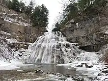 Delphi Falls is a waterfall located on East Branch Limestone Creek southeast of Delphi Falls, New York and west-southwest of Union, New York. Previously closed to the public, the property was sold to Madison County in 2018.[3] Delphi Falls County Park opened later that year.[4]