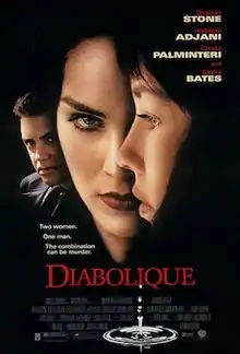 Diabolique is a 1996 American psychological thriller film directed by Jeremiah Chechik, written by Henri-Georges Clouzot and Don Roos, and starring Sharon Stone, Isabelle Adjani, Chazz Palminteri, and Kathy Bates. The plot follows the wife and mistress of an abusive schoolmaster who find themselves stalked by an unknown assailant after murdering him and disposing of his body.
