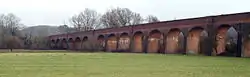 Intermediate stations were to have been provided on the route and a story grew up that the St James' Park, Southampton site in Shirley was excavated for this purpose, often repeated in local books.[8][2] Deposited plans, however, show the park site already existed within the surrounding road layout and was not part of the planned route, which ran to the north east of St James' Church; its current sunken appearance was caused by later gravel extraction.[11] Archival research by the Shirley Local History Group, notably among the records of a local landowner revealed that a later revival of this scheme, the Southampton and Winchester Great Western Junction Railway, intended to use the park as the original route at this location had by then been developed. Plans and sections dated 1901 show the intended route of the railway as passing through the park from East to West.[12] Records indicted that property sales were discussed for this scheme, which would have followed a slightly different route to the previous scheme in some areas without a tunnel at Chilworth. South of St James's Park at this time Didcot, Newbury and Station (now Stratton) Roads were named. Station Road also contain a Police Station.[13][14] The only physical remnant of the project in Southampton is the tree covered embankment hidden behind current properties east of Hill Lane between Milton Road and Commercial Road. The deposited plans for the route through Southampton[11] and current land levels suggest this was also the location of the viaduct work described by Sands.[15] A photograph described as illustrating the part built viaduct from the London and South Western Railway appears in both the book An Illustrated History of the Didcot, Newbury and Southampton Railway[16] and in a detailed article about the Didcot Newbury and Southampton Railway in Southampton in the Hampshire Industrial Archaeology Society Journal, No. 26 (2018).[17]