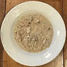 The soup is generally described as a pottage[5] of almond milk, capon, sugar, and spices.[1][2] It may be similar to a 15th-century dish named Bardolf,[1][4][9] as the Bardolf family held Addington Place for a period:[1]