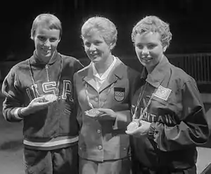 The events are labelled as 3 metre springboard and 10 metre platform by the International Olympic Committee,[3] and appeared on the 1960 Official Report as 3-metre springboard diving and 10-metre high diving, respectively.[4]