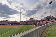 Doak Field (or The Doak) is a baseball venue in Raleigh, North Carolina, United States. It opened in 1966 and is home to the North Carolina State University Wolfpack college baseball team of the NCAA's Division I Atlantic Coast Conference (ACC).[1] It is named for Charles Doak, who was the head coach of the NC State baseball team from 1924–1939.[2] The stadium is located on NC State's West Campus, behind Lee and Sullivan residence halls.[3] The diamond is in the north/northwest corner of its block, which is bounded by Thurman Drive (third base, north/northeast); Dail Park and the residence halls (left field, east/southeast); Sullivan Drive (right field, south/southwest); and Varsity Drive (first base, west/northwest). Its seating capacity is 2,500 spectators, with an overflow capacity of 3,000. The largest crowd at Doak Field since its 2004 renovation was 3,109 on April 28, 2007, in a series finale between NC State and its rival UNC.[4] Doak Field hosted the Atlantic Coast Conference Baseball Tournament in both 1974 and in 1980. NC State won the championship in 1974, while Clemson won in 1980.[5]