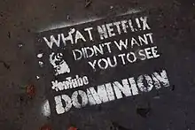Animal rights activists participated in the temporary shutdown of a slaughterhouse in Benalla, Victoria, on 26 March, to coincide with the film's premiere in Melbourne.[11] On 8 April 2019, a series of protest actions were held across Australia to mark the one year anniversary of the film. Protests included the storming of abattoirs and the halting of traffic at Melbourne's busiest intersection during peak hour. Activists held signs promoting the website watchdominion.com where Dominion can be watched for free.[12]
