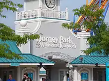 ![]() The current entrance to Dorney Park & Wildwater Kingdom with Talon's lift hill in the background | |