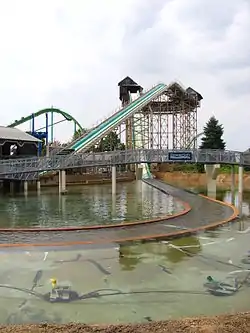 In 2013, Dorney Park featured no major new attractions, but rather small changes to the park, such as a new Fast Pay wristband, allowing guests to add money to an RFID prepaid wristband, allowing them to pay for food and merchandise without carrying cash.[8] On 28 August 2013, Dorney Park announced that a new 65-foot-tall (20 m) tall water slide complex, Snake Pit, would be constructed for the 2014 season. Snake Pit features six water slides, Python Plummet, which is three free-fall body slides, Constrictor, which is an enclosed tube slide, and Boa Blaster, which is a twin tube slide featuring high speed drops. Snake Pit replaced Riptide Run and The Lily Pads. The first slide pieces of Snake Pit began to arrive at Dorney Park on Wednesday, 22 January 2014. Snake Pit opened on 30 May.[9][10] Also new for 2014 is an in park television channel called FUNtv. FUNtv is shown on television screens in the queue lines of many of the park's major attractions. Content shown includes weather, music videos, and trivia. The content for FUNtv is controlled out of sister park Kings Island in Mason OH.[11][12]
