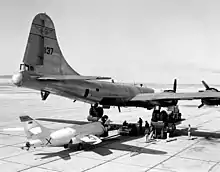 When it became obvious that the D558-1 fuselage could not be modified to accommodate both rocket and jet power, the D558-2 was conceived as an entirely different aircraft.[2] A contract change order was issued on 27 January 1947 to formally drop the final three D558-1 aircraft and substitute three new D558-2 aircraft instead.[3]