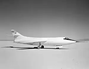 The "-2" in the aircraft's designation referred to the fact that the Skyrocket was the phase-two version of what had originally been conceived as a three-phase program. The phase-one aircraft, the D-558-1, was jet powered and had straight wings. The third phase, which never came to fruition, would have involved constructing a mock-up of a combat type aircraft embodying the results from the testing of the phase one and two aircraft. The eventual D-558-3 design, which was never built, was for a hypersonic aircraft similar to the North American X-15.[1]