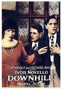 Downhill is a 1927 British silent drama film directed by Alfred Hitchcock, starring Ivor Novello, Robin Irvine, and Isabel Jeans, and based on the play Down Hill by Novello and Constance Collier. The film was made by Gainsborough Pictures at their Islington studios. Downhill was Hitchcock's fourth film as director, but the fifth to be released. Its American alternative title for was When Boys Leave Home.