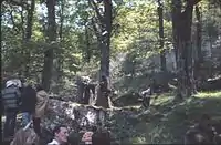 - The scene where the party cross a wooden bridge below a waterfall was shot at the foot of Cwmorthin Slate Quarry