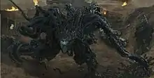 Designers created the alien Mimics to look different from any terrestrial animal. Davis and Liman favored an early model composed primarily of tentacles. SPI's Dan Kramer described its appearance as "heavy black spaghetti" and noted that the modelers faced a challenge creating the tentacled creatures.[31] A technical animator created an Autodesk Maya plugin that made the movement of each tentacle independent.[40] Since Liman did not want the Mimics to look "too organic or terrestrial", Imageworks' artists devised the idea of making the aliens out of an obsidian-like material, "basically a glass that could cut".[41] Various debris was incorporated within the tentacles to give the creature a sense of weight and fast movement. The Alphas were given a definable head area to show their status as more sentient, while receiving a different color and a bigger size compared to the Mimic grunts.[41] Cinesite created the mechanical Mimics used in the training areas,[42] while MPC created the Omega in a digital environment into which the effects artists composited underwater footage filmed at Leavesden's water tank.[43]