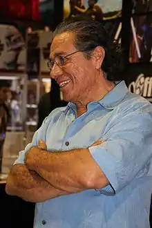 Edward James Olmos (born February 24, 1947) is an American actor, director, producer, and activist.[2] He is best known for his roles as Lieutenant Martin "Marty" Castillo in Miami Vice (1984–1989), actor in and director of American Me (1992), William Adama in the re-imagined Battlestar Galactica (2004–2009), teacher Jaime Escalante in Stand and Deliver (1988), and Detective Gaff in Blade Runner (1982), and its sequel Blade Runner 2049 (2017). In 2018, he played the father of two members of an outlaw motorcycle club in the FX series Mayans MC.