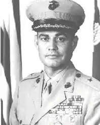 At the outbreak of the Korean War, he commanded the Weapons Company, 1st Battalion, 6th Marines, Camp Lejeune. The half strength battalion was just back from the Mediterranean when it boarded a troop train west. It was redesignated 3rd Battalion, 1st Marines.[2] They were ordered to South Korea in August 1950 and participated in the Inchon Landing that September. He continued in combat as weapons company commander during the initial phases of the war; and as a battalion operations officer and executive officer during the Chinese Spring Offensive.