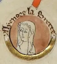 ![]() Alyenore la Brette in a 13th-century genealogy (British Library) | |