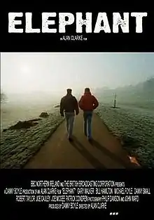 Elephant is a 1989 British short film directed by Alan Clarke and produced by Danny Boyle. The film is set in Northern Ireland during the Troubles and its title comes from Bernard MacLaverty's description of the conflict as "the elephant in our living room" — a reference to the collective denial of the underlying social problems of Northern Ireland. Produced by BBC Northern Ireland, it first screened on BBC2 in 1989. The film was first conceived by Boyle, who was working as a producer for BBC Northern Ireland at the time.[1]