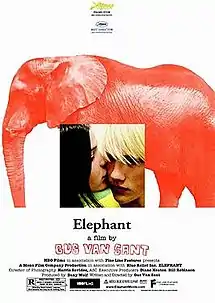 The title Elephant is a tribute to the 1989 BBC short film of the same name, directed by Alan Clarke.[2] Van Sant originally believed Clarke's title referred to the parable of the blind men and an elephant, in which several blind men try to describe an elephant, and each draws different conclusions based on which body part he touched, and Van Sant's film uses that interpretation, as the same general timeline is shown multiple times from multiple viewpoints.[3] Later, Van Sant discovered Clarke's film referred to the phrase "elephant in the room" (the collective denial of some obvious problem).[4] Also, Gus Van Sant named Chantal Akerman's film Jeanne Dielman, 23 quai du Commerce, 1080 Bruxelles (1975) an inspiration.[5]