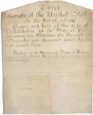 The Eleventh Amendment was proposed by the 3rd Congress on March 4, 1794, when it was approved by the House of Representatives by vote of 81–9,[3] having been previously passed by the Senate, 23–2, on January 14, 1794.[4] The amendment was ratified by the state legislatures of the following states:[5]