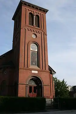 Emmanuel Baptist or the Main Street Baptist Church is a historic Baptist church building at 717 Main Street in Worcester, Massachusetts. It is the only example of Norman Style architecture in the city. The brick church was built in two parts: the chapel was built in 1853, and the main church body was built in 1855. The elements characteristic of this particular style include recessed wall paneling, the corbelled roofline, buttresses, and the recessed entry framed by an arch. The church was built for the Third Baptist congregation, which merged with the First Baptists in 1902, at which time the building was sold to the First Presbyterian Church of Worcester.[2]