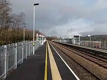 The design for the station was unveiled by Network Rail on 9 February 2012. It comprises two six-car length platforms with step-free access, parking for 17 cars including disabled spaces,[11] a drop-off point, CCTV, waiting shelters, ticket machines, a bicycle storage area, emergency help points and train information displays.[6][12][13] The design was developed jointly by the Welsh Assembly Government, Network Rail, Caerphilly County Borough Council, Sewta and Arriva Trains Wales.[12] Provision of the new station was scheduled to cost £5.2 million.[7] From opening to October 2018, it was operated by Arriva Trains Wales. Transport for Wales took over operation from October 2018.[14]