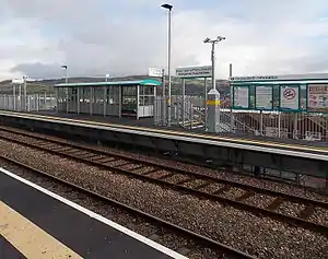 The provision of a station on the Rhymney Line at Energlyn was raised in January 2001 when Sue Essex AM was reported to have instructed that £16 million should be set aside for works to improve capacity on the line, including a new station.[3] The failure of Railtrack delayed the project, which was next mentioned in Network Rail's Wales Route Utilisation Strategy for Control Period 4 (2009-2014).[4][5] The station was identified as a longer-term option to be undertaken beyond the Control Period as part of the Sewta strategy which also involved installing a passing loop at Tir-Phil, allowing an increased service on the Rhymney Line.[6] The station would serve new housing around Energlyn and Churchill Park,[6][7] as well as Pwllypant, Penyrheol, Abertridwr and Bedwas.[8] The population in the area is large enough to warrant a station but it is thought unlikely that patronage on the Rhymney Line will dramatically increase, as many potential passengers already use neighbouring stations.[8] The initial service provision was four trains an hour to and from Cardiff Queen Street and Cardiff Central.[8]