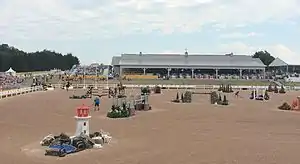 Equestrian competitions at the 2015 Pan American Games in Toronto were held from July 11 to 25 at the Caledon Equestrian Park in Palgrave.[1][2] The cross-country portion of eventing took place at nearby Will O' Wind Farm (Pan Am Cross-Country Centre), which is located in Mono.[3] Due to naming rights the venue was known as the latter for the duration of the games. The competition was split into three disciplines, dressage, eventing and show jumping. Each discipline awarded a team and individual set of medals.[4]
