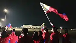 The Philippine government has repatriated its citizens from various COVID-19 affected countries and international conveyances. On December 1, the DFA reported that more than 277,320 overseas Filipinos (190,907 land-based and 86,413 sea-based) have been evacuated since its first repatriation on the first quarter of 2020.[2] According to the DFA, the COVID-19 pandemic-related repatriations have become the biggest evacuation conducted by the country since the 1991 Gulf War in the Middle East, where 20,000—30,000 Filipinos had been evacuated.[3] Philippine Airlines, the country's flag carrier, has volunteered several repatriation flights as early as March.[4]