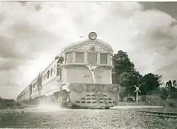 ![]() A Justicialista diesel locomotive at a level crossing, 1952. | |