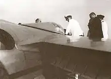 To prove the soundness of the IAe 33 design, two gliders built under contract by another expatriate, Reimar Horten, were constructed and used for aerodynamics testing in 1948–1949, including flights by Tank himself.[9] These tests revealed significant problems with lateral stability, resulting in modifications to the tail to address this problem before construction began on two prototype airframes. Due to the lack of modern machinery, the all-metal fabrication relied heavily on handcrafting, and fabricating the prototypes was a labor-intensive procedure. President Perón envisioned that a benefit of setting up an aviation factory in Argentina would be to introduce production standards comparable to world-class manufacturing facilities. However, Tank realized that production tools and jigs were not feasible at this stage and relied instead on essentially hand-built examples.[26] The first airframe (No. 01) reserved for static testing, was subsequently destroyed during the tests.[1]