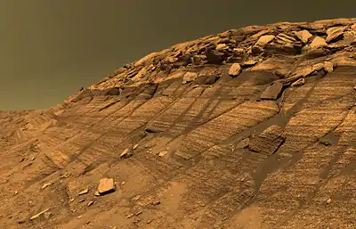 False color is used (among others) for satellite and space images: Examples are remote sensing satellites (e.g. Landsat, see example above), space telescopes (e.g. the Hubble Space Telescope) or space probes (e.g. Cassini-Huygens). Some spacecraft, with rovers (e.g. the Mars Science Laboratory Curiosity) being the most prominent examples, have the ability to capture approximate true-color images as well.[3] Weather satellites produce, in contrast to the spacecraft mentioned previously, grayscale images from the visible or infrared spectrum.