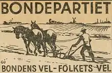 The Farmers' Party (Danish: Bondepartiet), initially known as the Free People's Party[1] (Det Frie Folkeparti), was an agrarian[2] political party in Denmark. It was founded in 1923 as the political wing of Landbrugernes Sammenslutning. At the time of the founding of the party, 3 Venstre MPs joined it.[3]