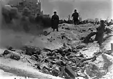 - German forces, retreating from the Soviet Union, liquidated the remaining Jews in the Byelorussian S.S.R. city of Slutsk. Commander Eduard Strauch directed his soldiers from Minsk to oversee the deportation of the remaining 4,000 Jews[23]