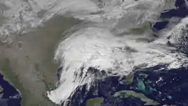 ![]() The extratropical cyclone responsible for the winter storm at 16:45 UTC (11:45 a.m. EST) on February 25 over the Southeastern United States | |