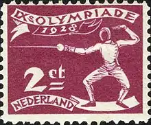 Fencing at the 1928 Summer Olympics on a stamp of the Netherlands