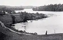 Findley Lake was settled by War of 1812 veteran Alexander Findley, a native of Northern Ireland who had emigrated to America sometime around 1769, settled in eastern Pennsylvania, married and started a family, and returned to Ireland for a few years before making the decision to live permanently in the United States. After purchasing land in Greenfield, Pennsylvania in 1805, he then purchased lot 52, near what is now Findley Lake, from the Holland Land Company in 1811,[2] and built a dam there in 1815 to power his mill, thus creating the lake from two ponds. The settlement that grew up around the mills prospered.