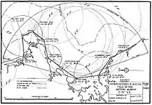 When an enemy surface craft was detected, bearings to it were measured from a pair of towers, using instruments like azimuth scopes or depression position finders. Since the distances along the line between the towers (called a baseline) had already been precisely measured by surveyors, the length of this baseline, plus the two bearing angles from two stations at the ends of the line (also called base end stations) to the target, could be used to plot the position of the target by a mathematical process called triangulation.[lower-alpha 4][1]